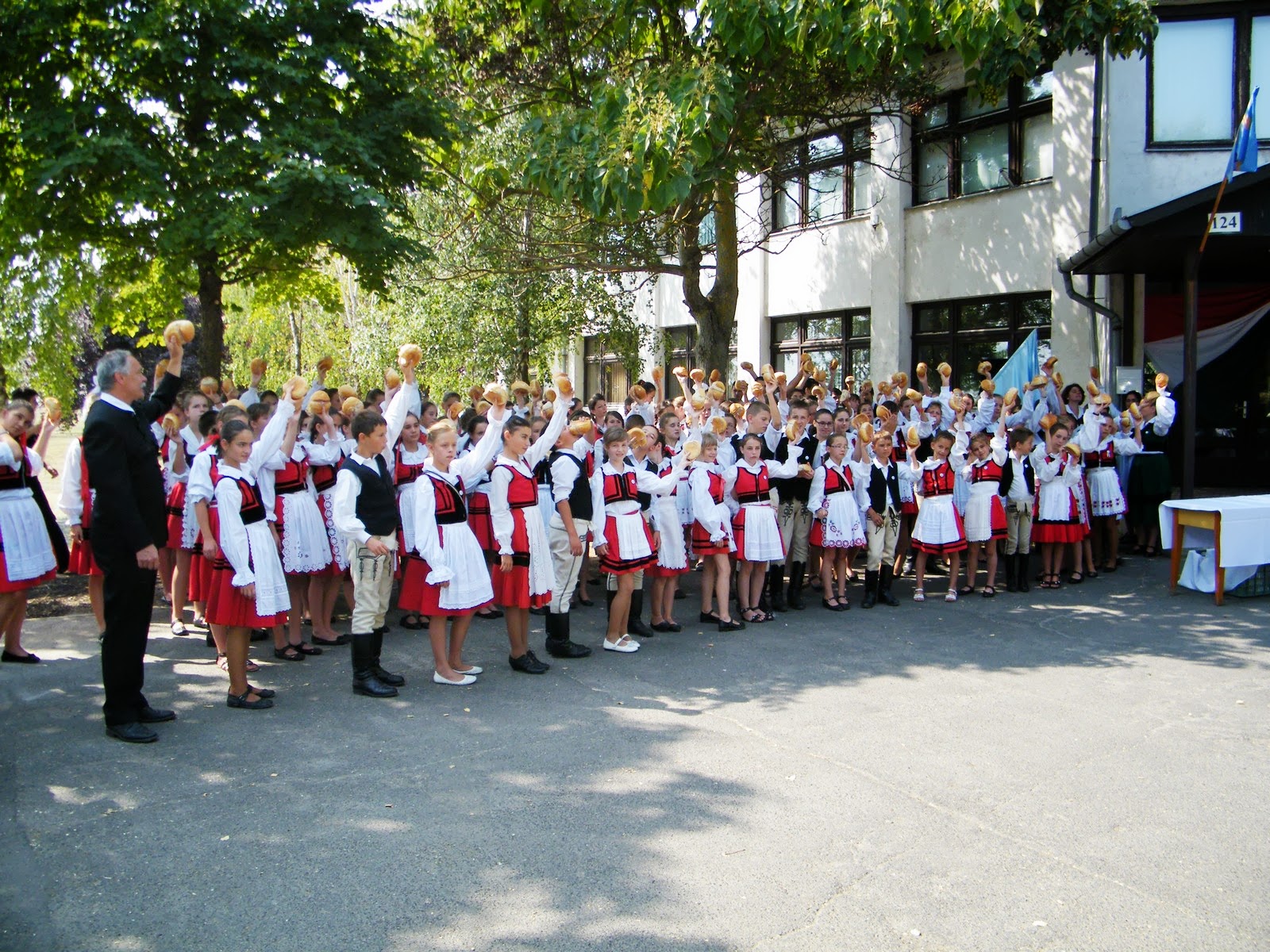 Augusztus 20. Szekelyruhaba oltozve reggeli utan 10 orakor autobuszokkal erkezunk az uj varoshazara. Gyomaendrod augusztus huszadikai unnepi rendezvenye kezdodik. A Gyerekfilire harul a feladat, hogy elenekelje a Himnuszt.