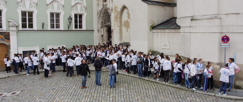 A wc-kre sort allni nincs ido, igy a pirkadat utani megallasoknal furdolepedos spanyolfal mogott folyik a pislantas. Delelott 10 orakor Passauban lelkes fogadobizottsag vezet ki a niedernburgi templomba. Molnar Krisztina es Ferencz Elek viszi a filiszalagos koszorut, a korus enekel, a noverke ismertet, nemetrol fordit Gotthard Szekely Csilla, meghivonk. Gizella kiralyne ereklyeje elott zaszlot hajtunk.